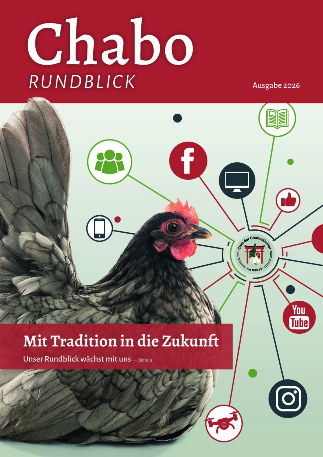 In dieser Ausgabe blicken wir unter anderem auf das Jubiläum des Chaboclubs zurück. Außerdem erwarten euch Neuigkeiten aus der Vereinsarbeit, ein spannender Bericht über eine große Chabo-Reise, ein Beitrag zu Darmkrankheiten sowie ein Erfahrungsbericht über den Einstieg in die Chabo-Haltung inklusive Hühnerstallbau – und vieles mehr.